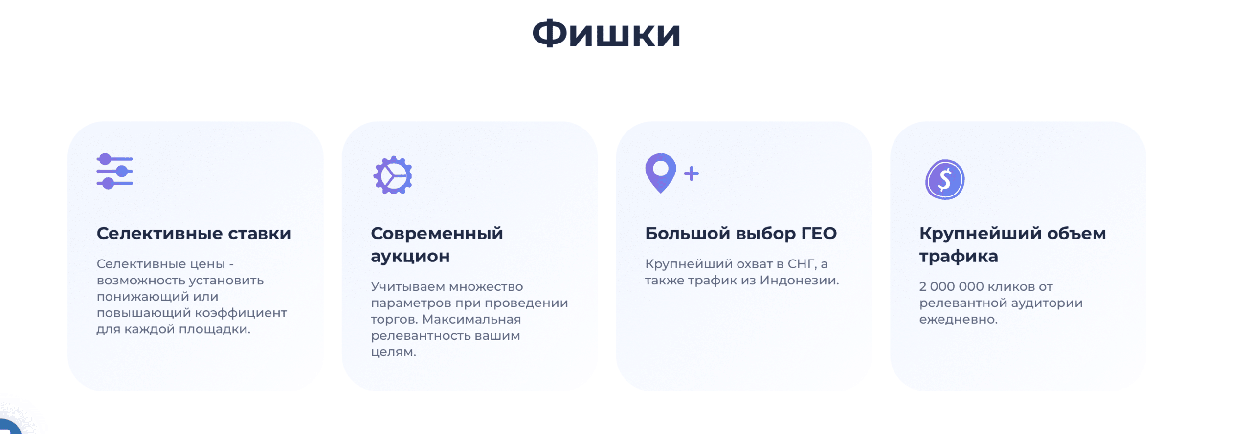 Ads2.bid — это еще одна популярная тизерная сеть, известная своим широким инвентарем и глубоким анализом данных. Сеть предлагает 2 000 000 кликов в день от самой релевантной аудитории, основной объем которой приходится на СНГ! Предоставляет возможность работать с различными форматами тизеров и широкие возможности по настройке таргетинга. Ads2.bid также предлагает использовать селективные ставки — это возможность установить понижающий или повышающий коэффициент для каждой площадки.